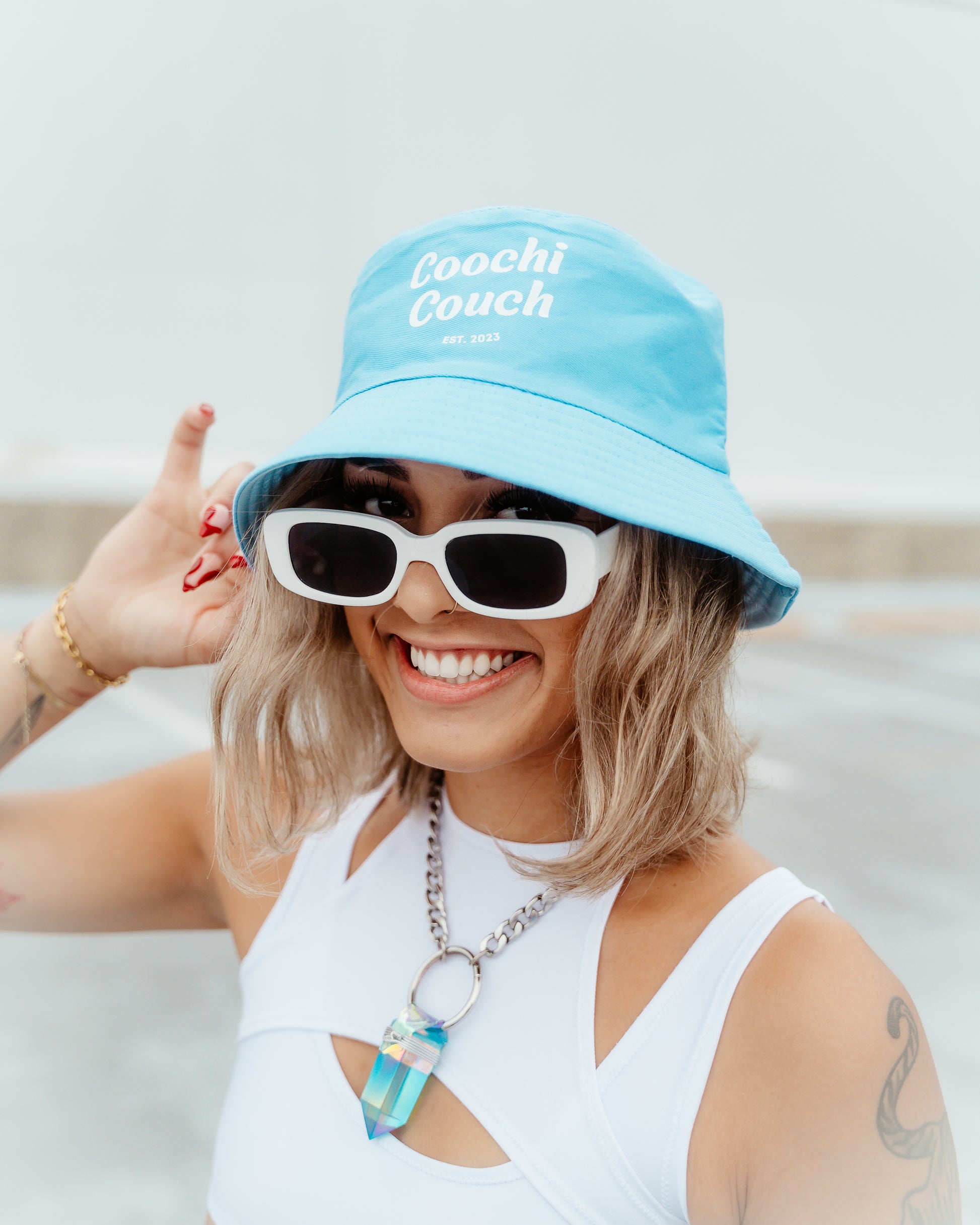Step into the world of vibrant style with Coochi Couch's Baby Blue and Bubblegum Pink Bucket Hats. These hats are more than just a trendy accessory; they are a statement of playful elegance and youthful charm. Designed for the fashion-forward individual, these bucket hats are the perfect finishing touch for any festival outfit or casual ensemble.